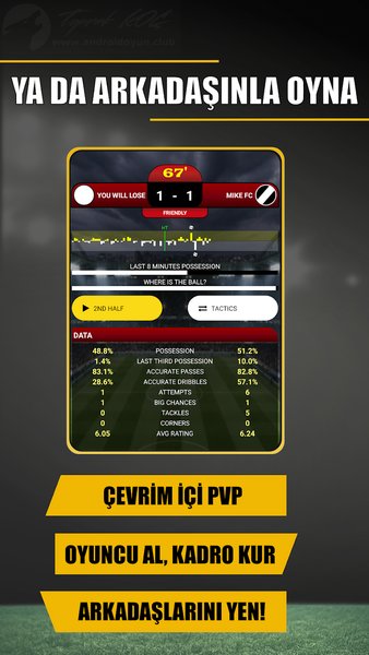 Be the Manager 2026 v2026.4.3 PARA HİLELİ APK, futbol ve takım yönetme oyunlarını seven hocalarım için güncel sürümünü ekleme gereği duyduğum yapımcılığını Mobisoca stüdyosunun üstlendiği Android platformunun popüler oyunlarından birisidir. Amacınız kontrolünü sağladığınız menajer karakter ile başında bulunduğunuz takımla maçlara çıkmak, rakip takımın kalesine topları yollamak ve kupaları kazanmaktır. Be the Manager 2026 içinde yaşanan maddi sorunlardan ve genel zorluklardan dolayı MOD APK yani sınırsız para hileli olarak sunuyorum bu sayede tüm liglerde oynayabilir, rahatlıkla transferler yapabilirsiniz. Farklı liglerden onlarca takım, transfer dönemleri, teknik – mali işler ve dahası sizleri bekliyor. Be the Manager 2026 v2026.4.3 sürümünde hatalar için düzeltmeler yapılmıştır. Grafikleri 2D olup ses kalitesi iyi seviyededir. Kontroller çift parmak ile sağlanabilmektedir. Be the Manager 2026 Play Store’da 9.000’den fazla indirilmiştir. TÜRKÇE dil desteği mevcuttur.