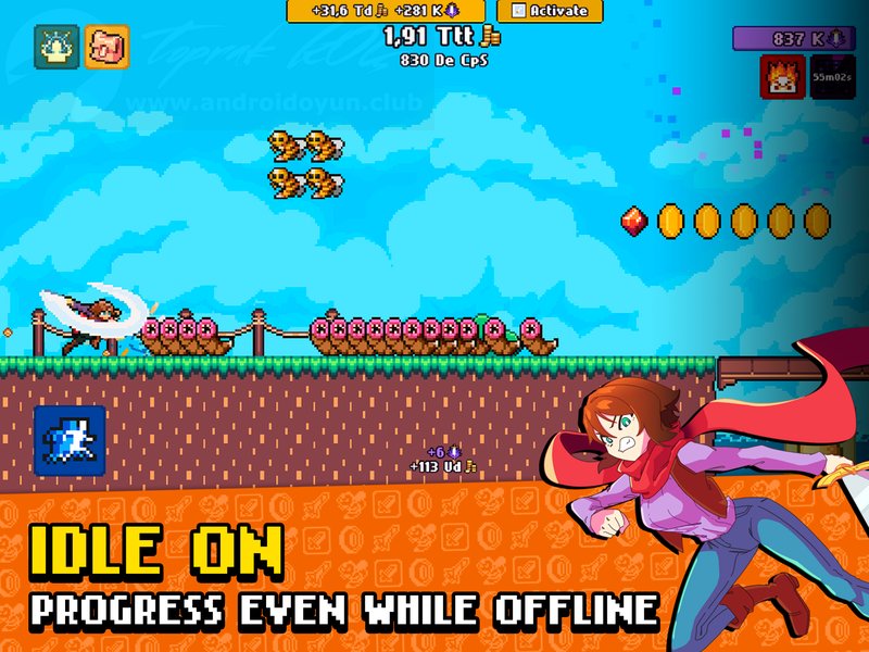 Idle Slayer v6.8.0 PARA HİLELİ APK, kıyasıya mücadele ve idle türündeki oyunları seven hocalarım için güncel sürümünü ekleme gereği duyduğum yapımcılığını Pablo Leban stüdyosunun üstlendiği Android platformunun sevilen oyunlarından birisidir. Amacınız kontrolünü sağladığınız savaşçı karakter ile daima ileri doğru gitmek, düşmanlarınızla kapışmak ve engelleri – tuzakları aşmaktır. Idle Slayer içinde yaşanan maddi sorunlardan ve genel zorluklardan dolayı MOD APK yani sınırsız para hileli, satın alma hileli hileli olarak sunuyorum bu sayede oyunun keyfini sonuna kadar çıkarabilir, yeteneklerinizi geliştirip düşmanlarınıza karşı daima üstün olabilirsiniz. Keşfetmeniz gereken ortamlar, farklı silahlar – ekipmanlar, tehlikeli canavarlar ve dahası sizleri bekliyor. Idle Slayer v6.8.0 sürümünde hatalar düzeltilip desteklenen cihaz sayısı artırılmıştır. Grafikleri 2D olup ses kalitesi iyi seviyededir. Kontroller çift parmak ile sağlanabilmektedir. Idle Slayer Play Store’da 130.000’den fazla indirilmiştir. TÜRKÇE dil desteği mevcuttur.